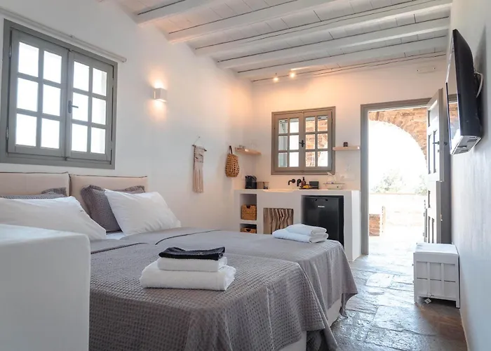 Das 3-Sterne-Hotel Living Theros Luxury Suites Kardhianí liegt in 6 km Entfernung vom Chalepas-Museum und bietet WLAN im ganzen Gebäude und Parkplätze.